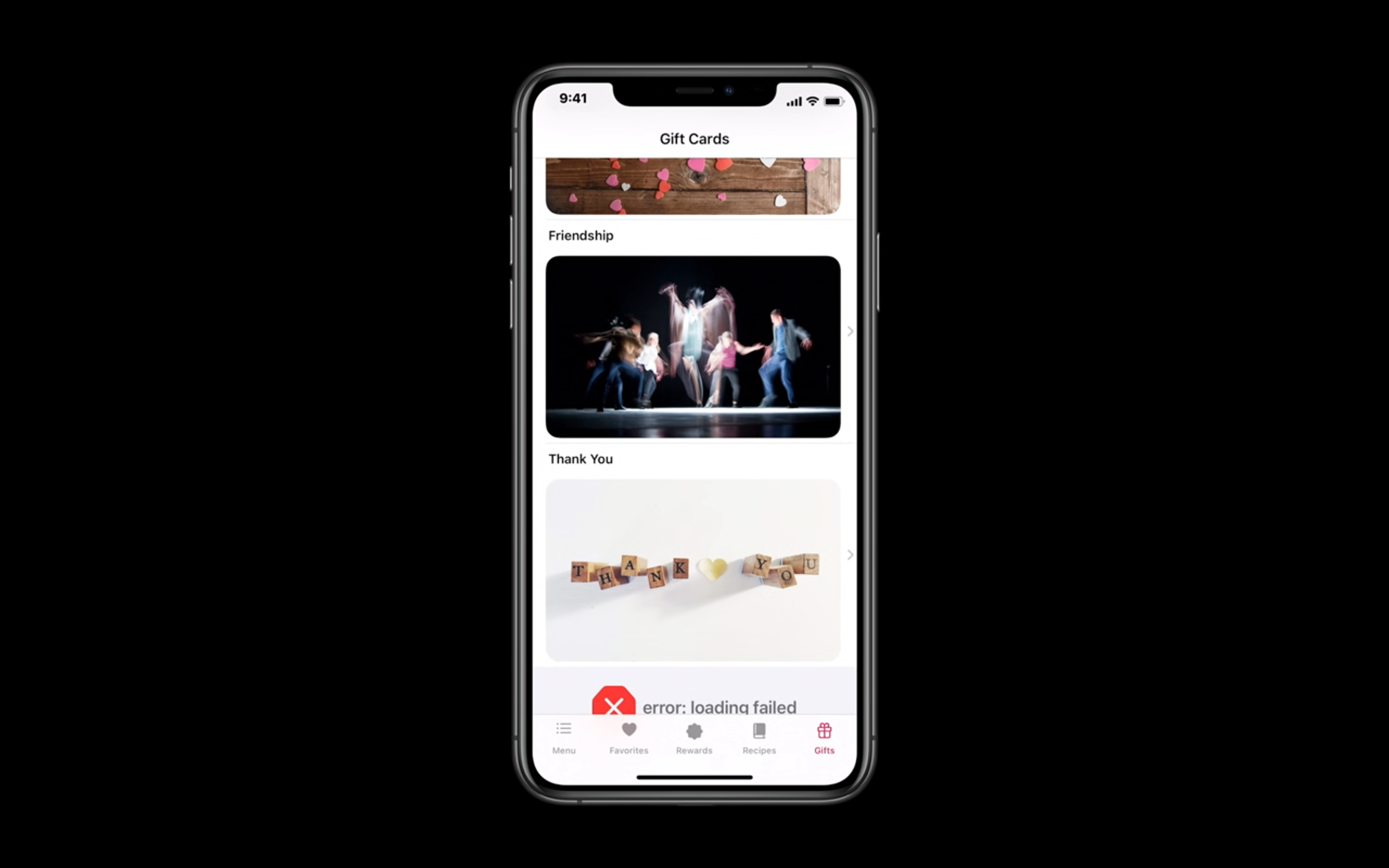 영상에서는 'Fruta' 라는 스무디를 구매하는 앱에서 발생하는 버그 상황을 보여줍니다. 'Fruta'에서는 친구들에게 기프트 카드를 선물해 줄 수 있는 탭이 존재하는데요. 탭에서는 다양한 상품들이 존재하는데 스크롤이 마지막에 도달하면 앱이 서버와 통신하여 더 많은 카드를 로드하기 시작합니다.