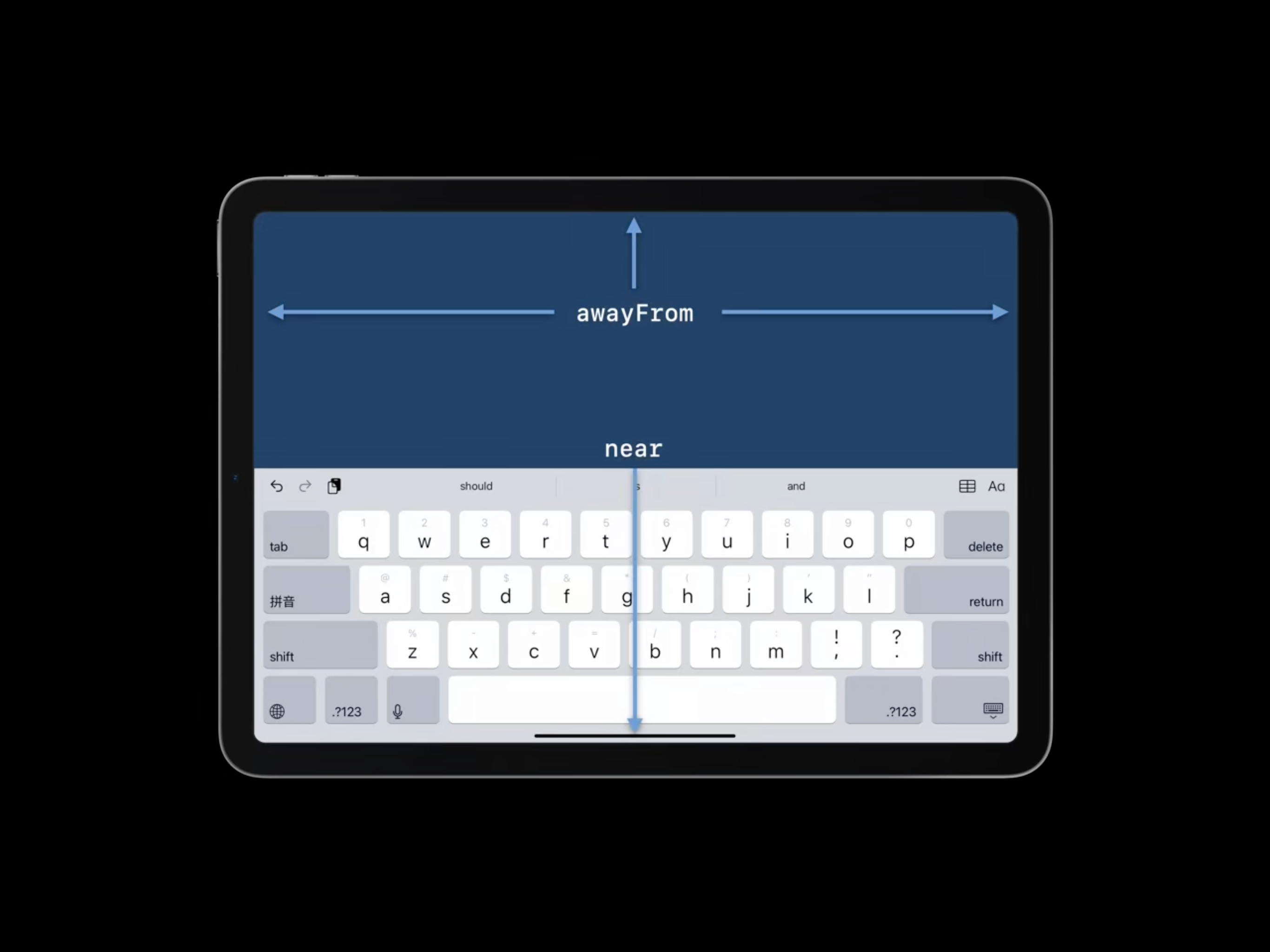 만약 좁은 상태라면, 도킹된 상태의 키보드가 마찬가지로 양 옆의 엣지들과는 awayFrom 상태로 고정되지만, top 과 bottom 엣지에는 near 상태일 수 있습니다.